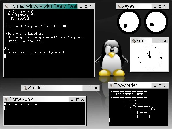 This theme is based on: "Ergonomy" for Enlightenment; and "Ergonomy Dreams" for Sawfish.