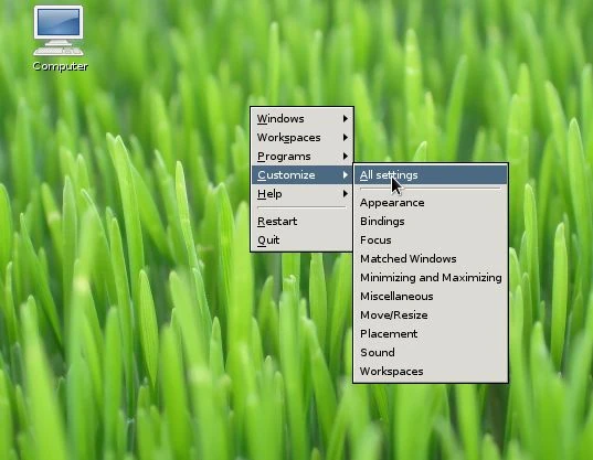 It can be accessed from the Sawfish menu, clicking the central mouse button on the desktop (root window) when using the default mouse bindings, or launching the sawfish-ui command directly from a terminal or a file browser.